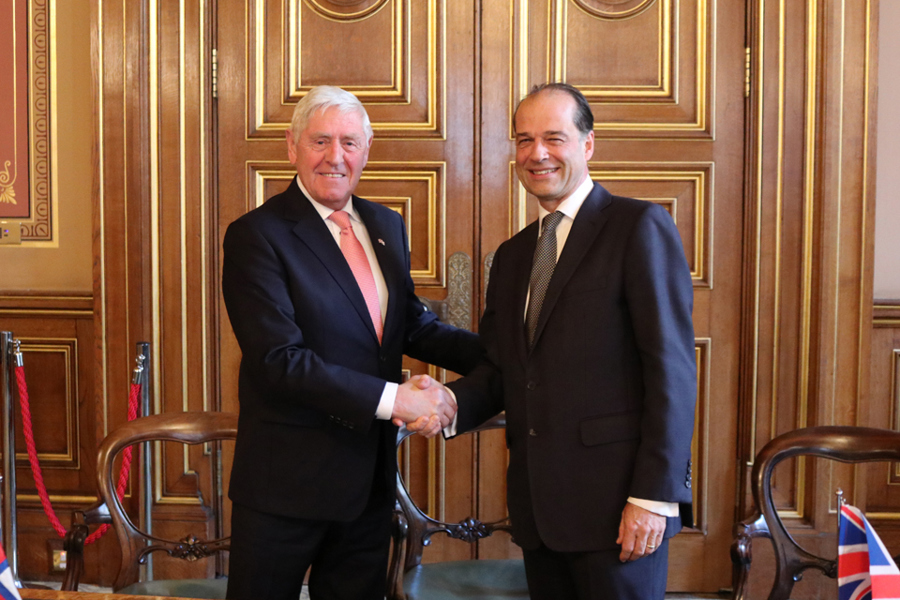 Føroyar og Bretland hava í morgun skrivað undir fríhandilssáttmála. Poul Michelsen, landsstýrismaður í uttanríkis- og vinnumálum, og George Hollingbery, handilsmálaráðharri, skrivaðu undir sáttmálan á hátíðarløtu í bretska uttanríkisráðnum. Bretski fiskimálaráðharrin, George Eustice, var eisini til staðar í sambandi við undirskrivingina.