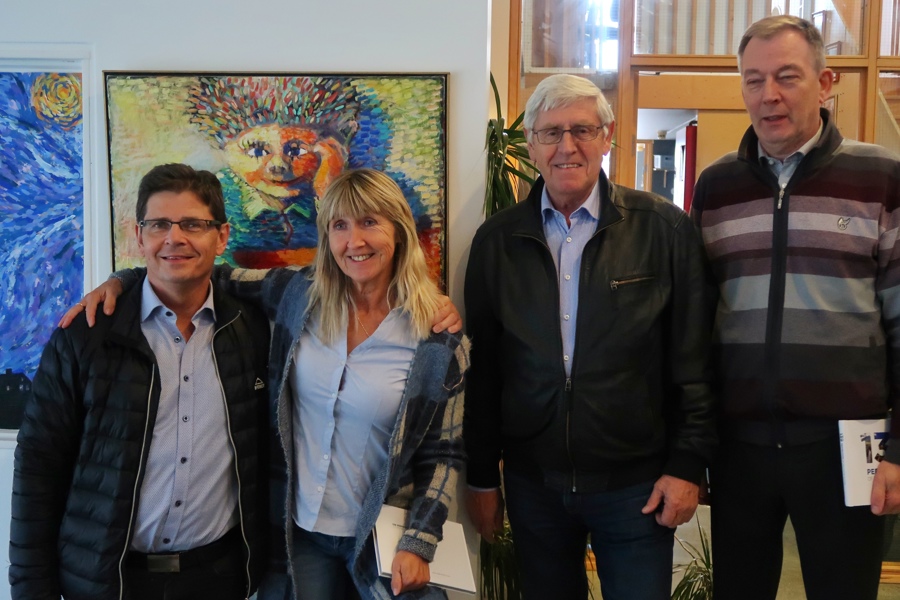 Petur Petersen, sendimaður í Íslandi, Anna Lind Ragnarsdóttir, skúlastjóri, Poul Michelsen, landsstýrismaður og Steinn I. Kjartansson, bygdarráðsformaður.